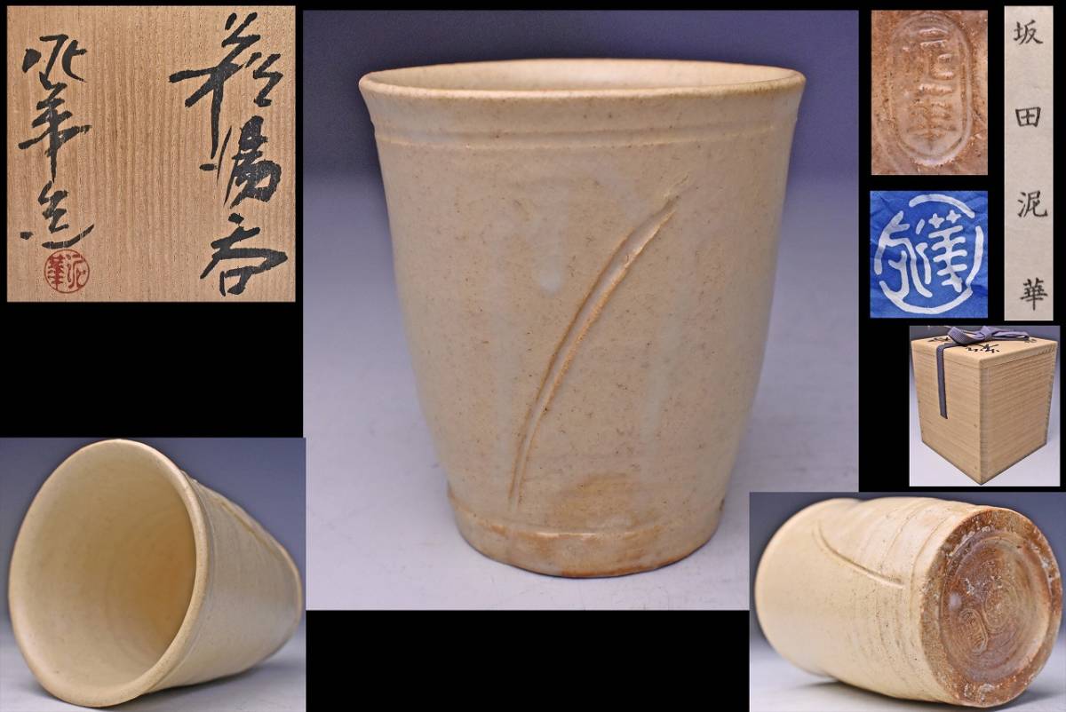 > 坂田泥華 13代 ★ 萩湯呑 ★ 共箱 共布 栞 ★ 天耳庵 ★ 彫りが良い景色で育つのが楽しみな逸品 ★ 山口県 ★ 検坂田慶造 ★