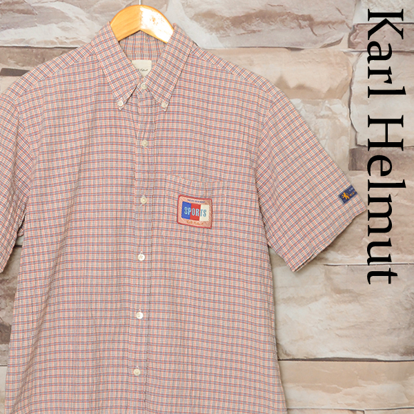 - KS4377 カールヘルム KARL HELMUT 半袖シャツ M 肩45 ボタンダウン SPORTS 格子柄 メール xq