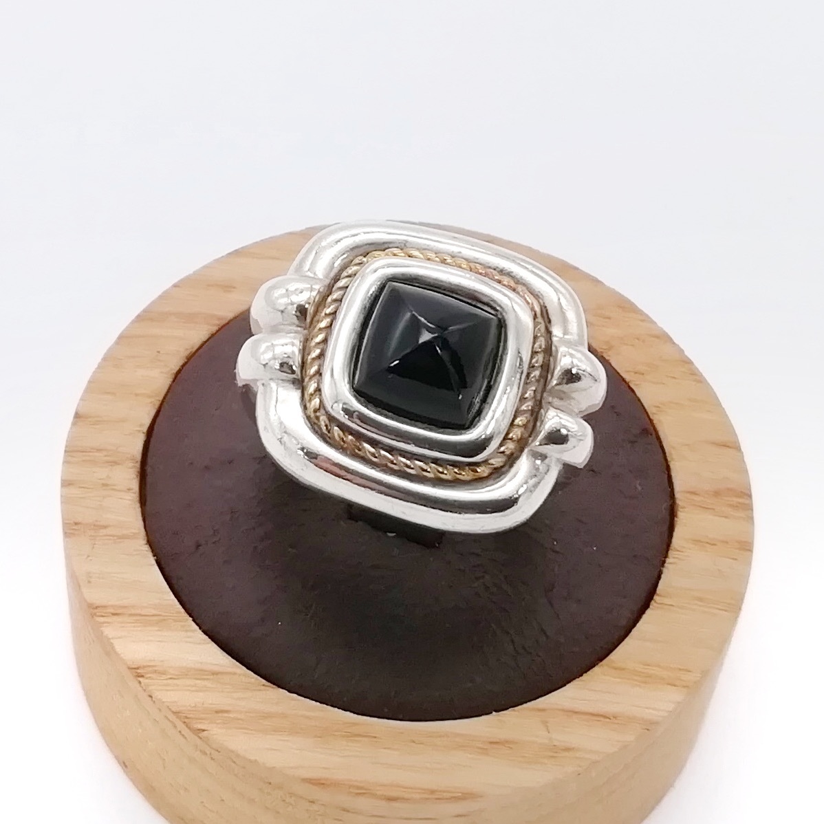 > 希少 Tiffany&Co. ティファニー ピラミッド 大粒 オニキス ゴールド シルバー コンビ リング 16号 指輪 SV925 750 K18 ヴィンテージ CC40