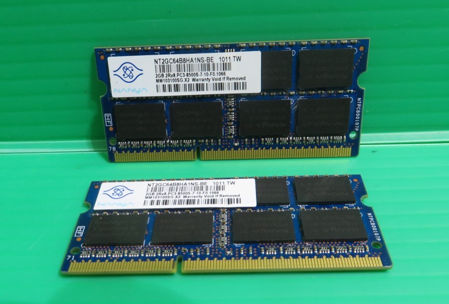 - PC-1450■メモリ 2枚セット/NT2GC64B8HA1NS-BE/2GB/PC3-8500S-7-10