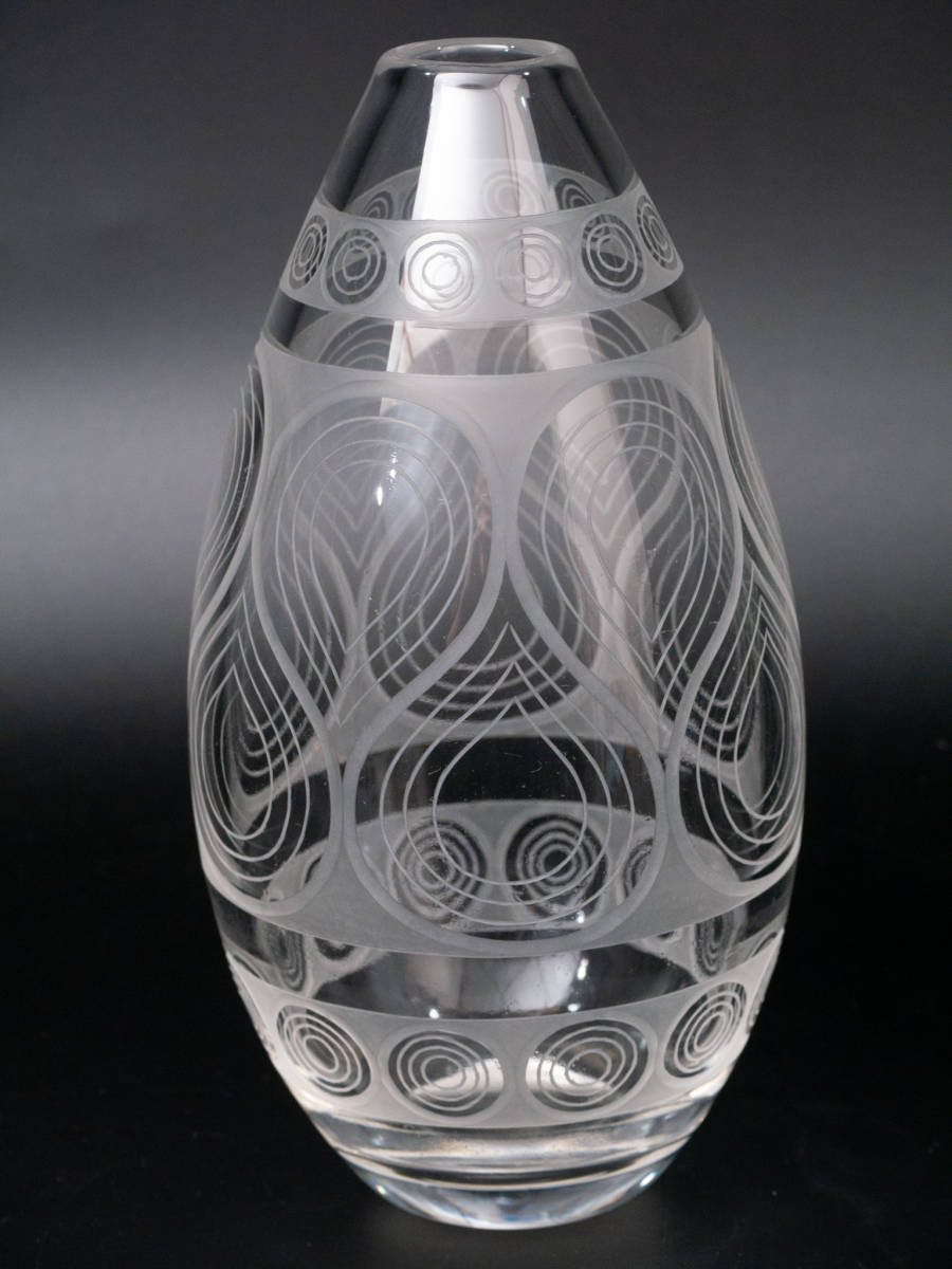 > 【値下げ交渉有り】 カガミクリスタルにおけるグラヴィールの大黒柱 名工 高木茂 造 クリスタル グラヴィール 丸に雫文 花入 花瓶 ベース