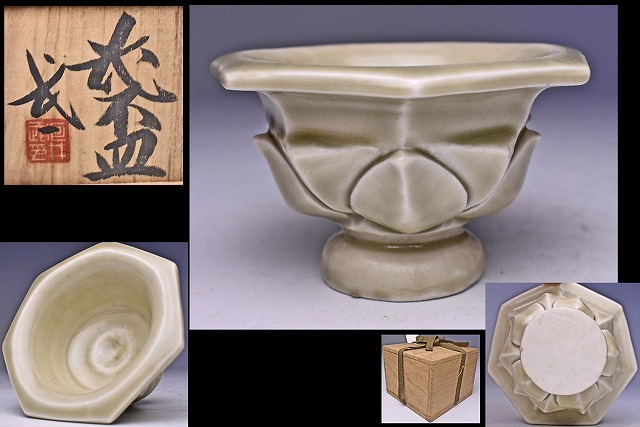 > 河井武一 ★ 白高麗 花 ぐい呑 ★ 共箱 ★ 叔父: 河井寛次郎 ★ 寛次郎氏作陶の作品を意匠とした逸品 ★ 白磁 磁器 民芸陶 ★検 河井博次