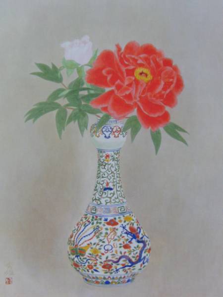 - 鎌倉 秀雄 、牡丹萬暦瓶、大判・豪華画版、版上落款入、新品額付、salt