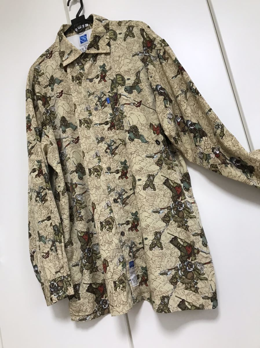 > 和柄長袖シャツ ECKO BLUE RHINO 希少・レア品 総柄 インポート キングサイズ シャツ B-BOY/HIP HOP 美品