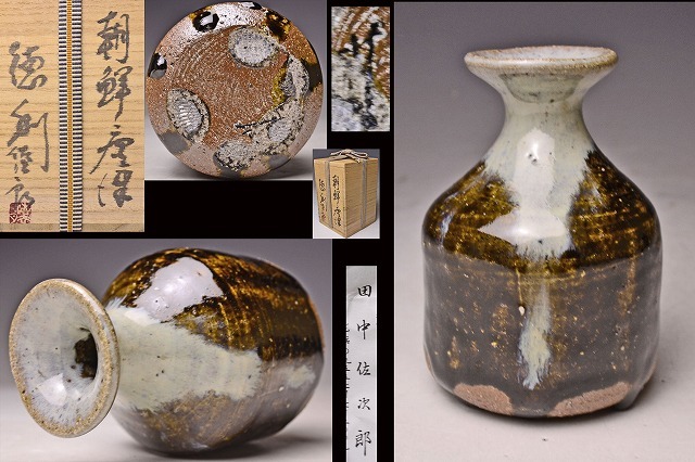 > 田中佐次郎 ★ 朝鮮唐津 徳利 ★ 共箱 栞 ★ 独酌にピッタリの景色豊かな逸品 ★ 酒器 ★ 検 加藤唐九郎
