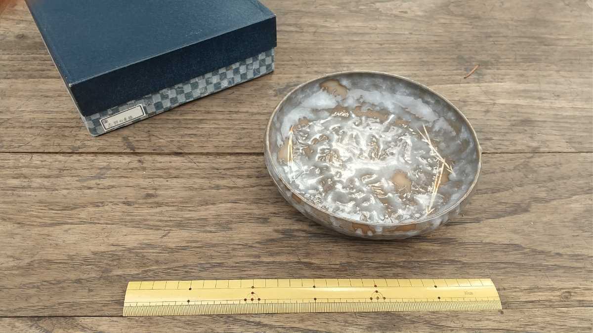 - 伝統工芸士 河島浩三 志野松葉文鉢皿 紙箱 【直径20㌢高さ4.7㌢重さ600㌘】