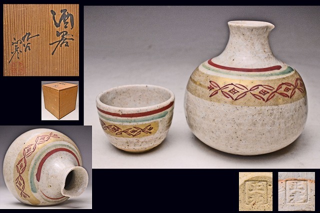 - 徳田正彦 ★ 色絵 金彩 酒器揃 ★ 共箱 ★ 人間国宝 ★ 3代 徳田八十吉 ★ 希少な若作 ★ 酒器 ★ 九谷 ★