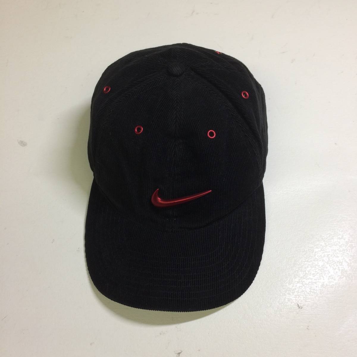 - 90s ナイキ コーデュロイ 6パネル キャップ 帽子 フリーサイズ ブラック