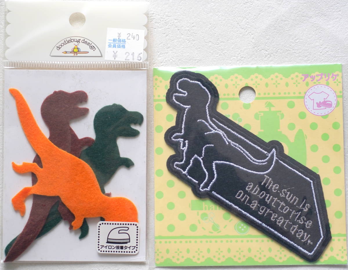 > 送料85円~ 未使用 恐竜アップリケ ワッペン 2個 4枚セット ティラノサウルス ポイント消化にも