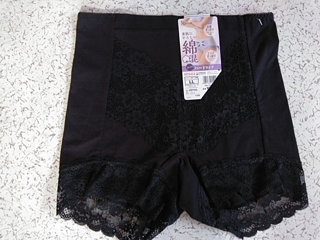 - アツギ 3D黒色地フロントお花模様1分丈ショーツ LL ハードタイプ 綿混