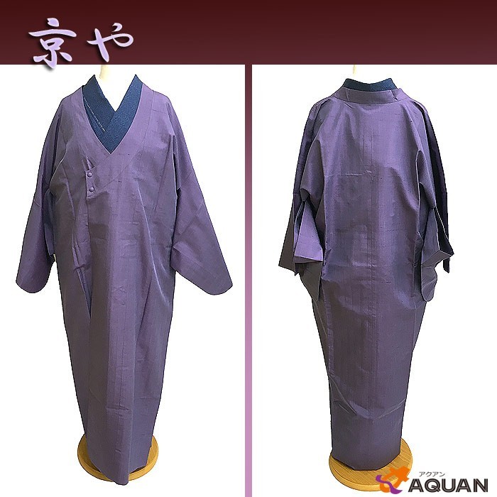 - セール 京やM032 正絹 紬 和装コート ロング丈 単衣 ストライプ 千代田衿 単衣 袷兼用 3シーズン対応 着物コート リサイクル着物 新古品
