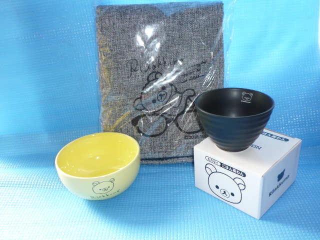 - D★非売品・未使用★ローソン×リラックマ ごはん茶碗とボウル(イエロー)とツイード調ブランケット