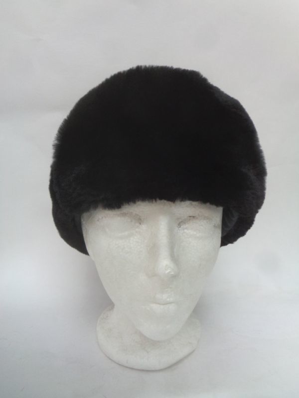 - カスタムメイド メンズ ブラック シェアード・ビーバー&レザー毛皮ファー・ハット 帽子 ロシアンスタイル