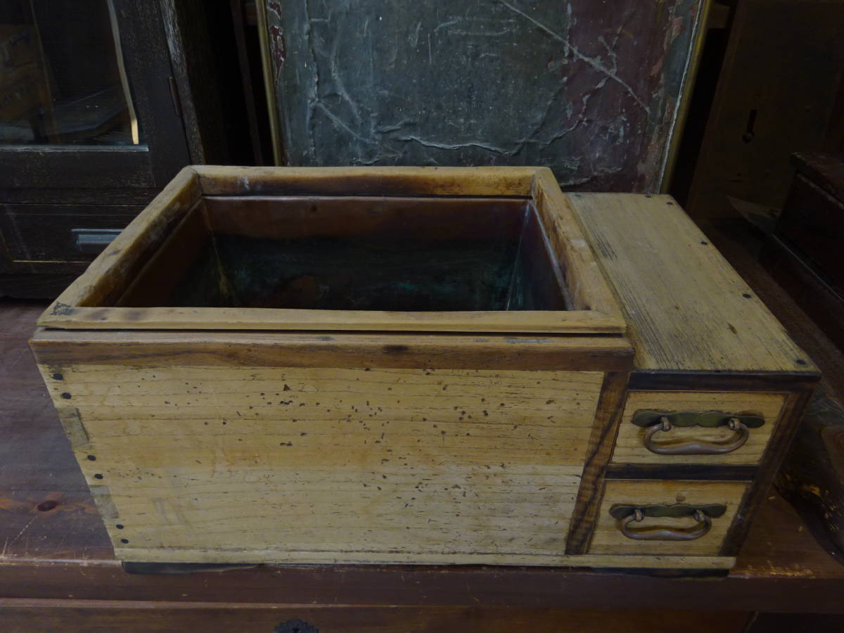 - 【大正期長火鉢】木製手あぶり箪笥骨董古民具古道具鉄瓶鉄鍋五徳引出しアンティーク骨董インテリアコンロ薪ストーブ暖炉インダストリアル