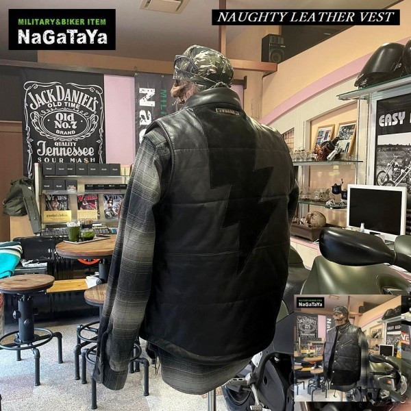 - Vin&Age ビン&エイジ レザー ナーティーベスト 40 Lサイズ VLJ6 エイジング加工 バッファローレザー仕様 Thunde サンダー ブラック