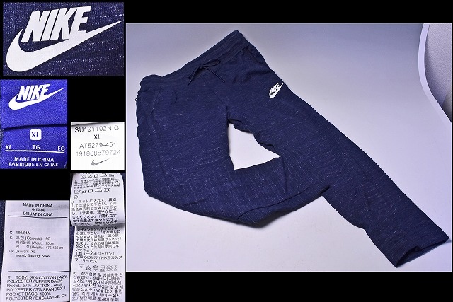 > ナイキ ★ NIKE ★ スウェットパンツ ★ トレーニングパンツ ★ ジョガーパンツ ★ SU191102NIG ★ XL ★ ネイビー 霜降り ★ 中古品 ★