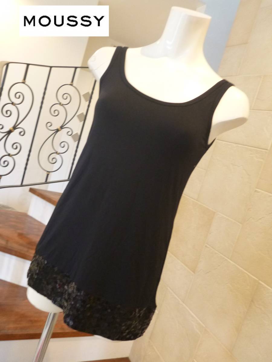- 7245円 新品 MOUSSY(マウジー) ★黒 スパンコール タンクトップ 1 S相当