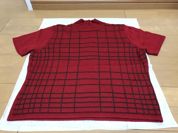 - 新品、SOLEIL (ソレイユ)の半袖ニット★2980円即決★サイズ42、Lサイズ、赤色、イタリア製糸使用、三陽商会、本物