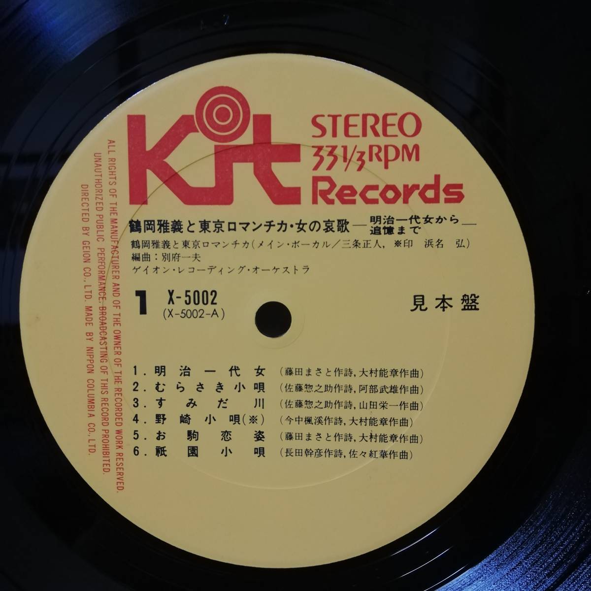 - 【LP】見本盤 - 鶴岡雅義と東京ロマンチカ - 女の哀歌 - X-5002 - *15