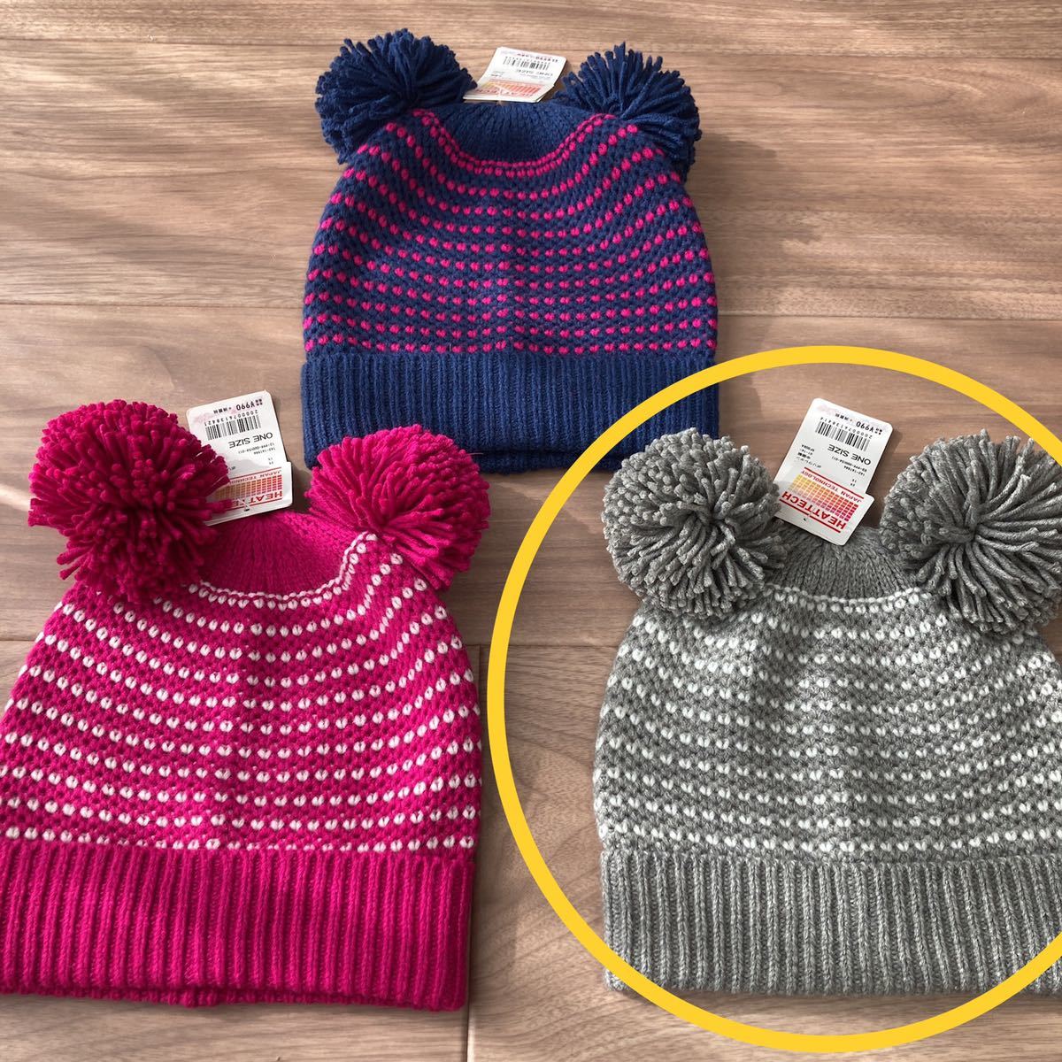 - 即決 新品 ユニクロ ヒートテック ニット帽 くまさん ポンポン キッズ ベビー こども グレー 帽子 ニットキャップ