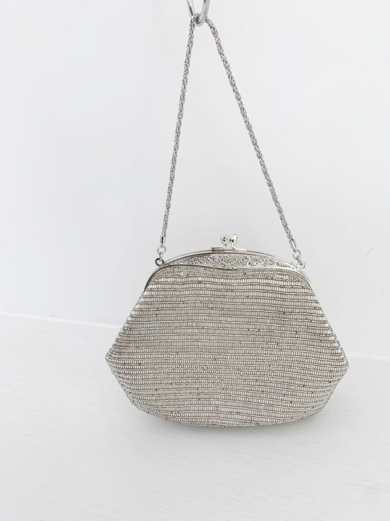 - 【希少】ヴィンテージ シルバー ビーズ パーティーバッグ 昭和 レトロ レトロモダン シンプル 銀 デッドストック おまけ付 透かし彫り