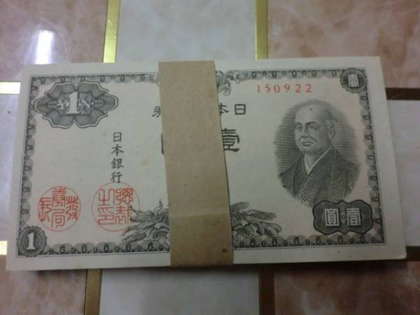 - ★ 日本銀行券A号1円 二宮1円 未使用 100枚 ★ No.100-1