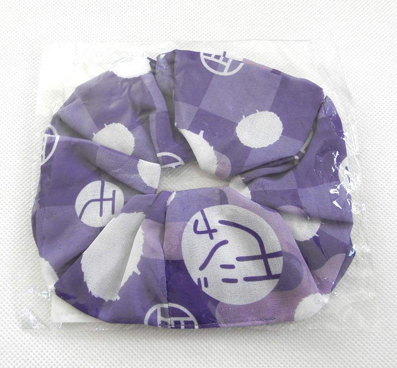 - 不機嫌なモノノケ庵 シュシュ モジャ 紫 ヘアアクセサリー 髪ゴム 未使用 グッズ ワザワキリ AJエステルアイス 冷感 和風 ロゴ コスプレ