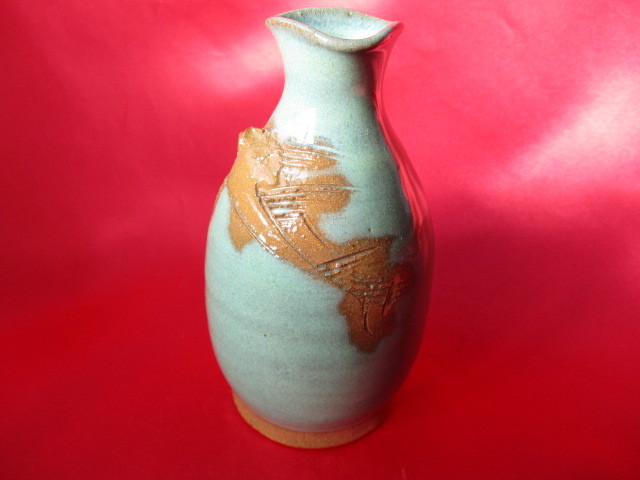 - 徳利 魚文 銘あり:ひいろ 一輪ざし