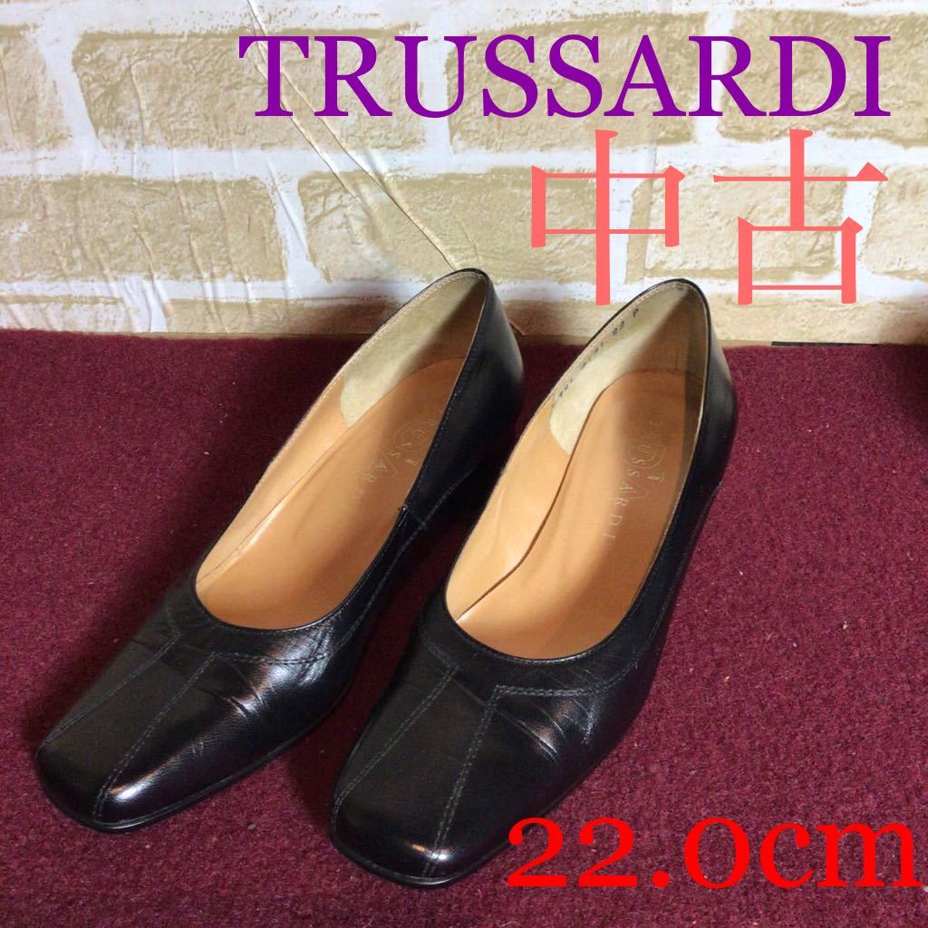 > 【売り切り!送料無料!】A-151 TRUSSARDI!22.0cm!仕事!ビジネス!冠婚葬祭!七五三!入園入学式!卒園卒業式!フォーマル!中古!