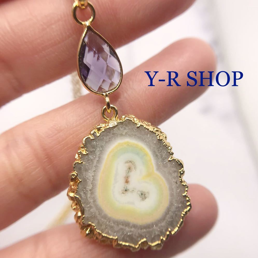 - 天然石★ソーラークォーツとアメジストのゴールド加工ネックレス★レディースペンダントエスニックアクセサリーカラーストーン Y-RSHOP新品