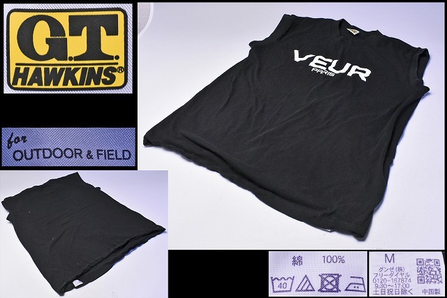 > VEUR ★ PARIS ★ G.T.HAWKINS ★ ノースリーブTシャツ ★ 黒 ★ Mサイズ ★ 綿100% ★ トレーニングに ★ スポーツに ★ 街着に ★ 中古品