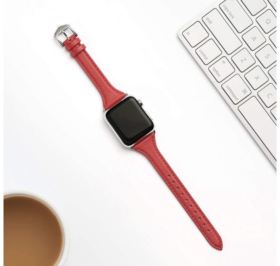 - Apple Watch アップルウォッチ バンド 革ベルト レザーベルトレディース スリム型 38/40/41mm シリーズ2345678SE対応 赤