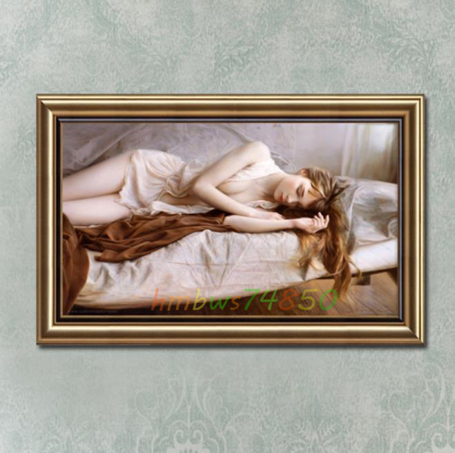 - ☆稀少品◆美術品☆官能美女 人物画 油彩 絵画 寝室 装飾品 美人画 額縁付き 40cm*60cm