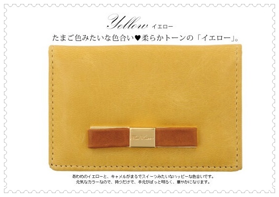 - <訳あり>働く女性の声が形になった!両面馬革(ポニー)使用の高級感があるリボンモチーフパスケース/イエロー