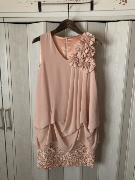 - ◆オレンジの花コサージュ付きノースリーブワンピース/パーティーワンピース◆nw