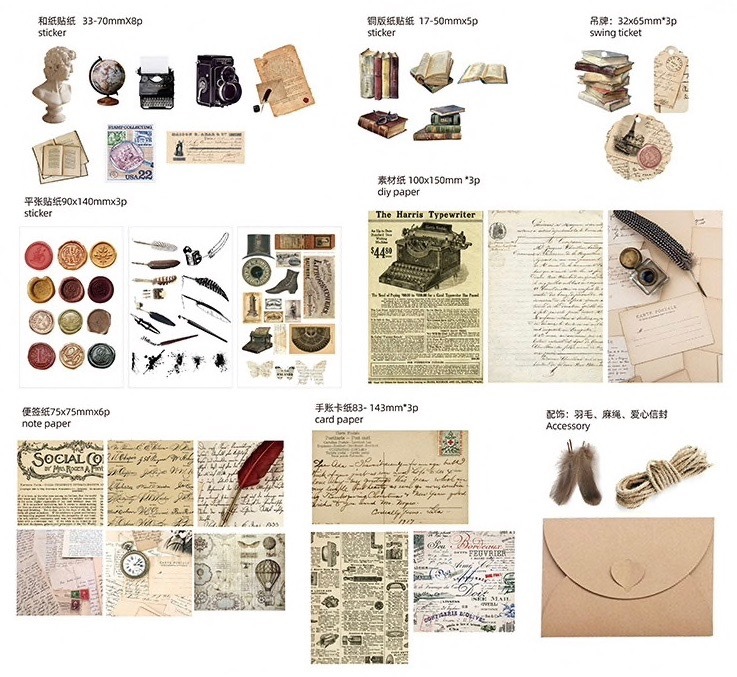 > ◆海外 素材紙・シールセット メモ 背景紙 No7-1 手紙・レター・書類 おすそ分け・手帳・日記・ジャンクジャーナル・コラージュに