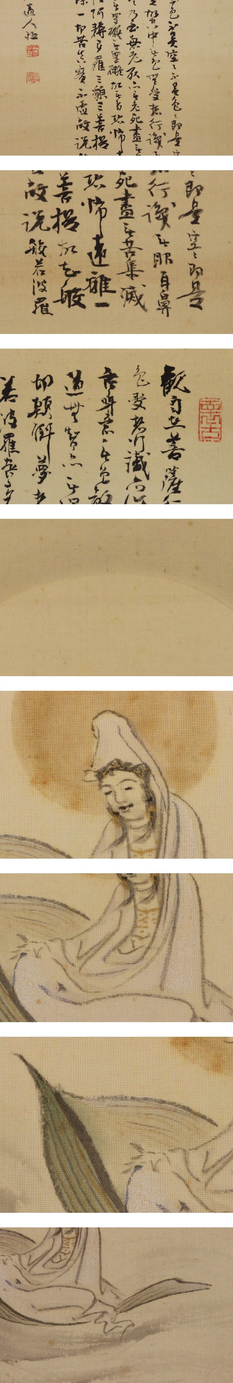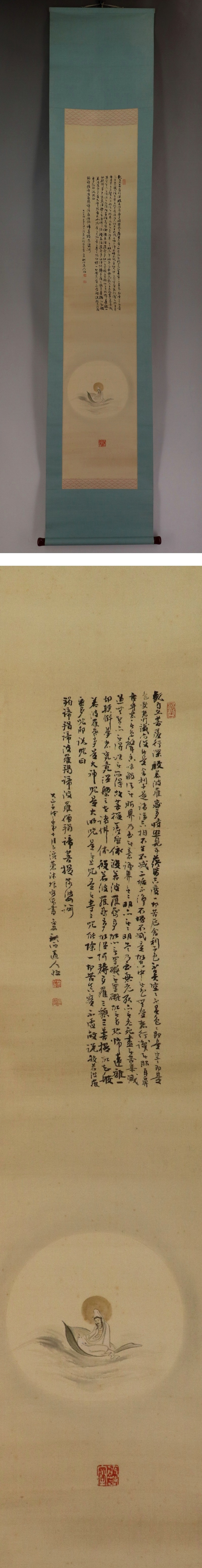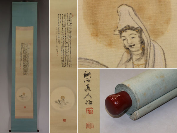 - 【真作】奥谷秋石【一葉観音】◆絹本◆合箱◆掛軸 v12170