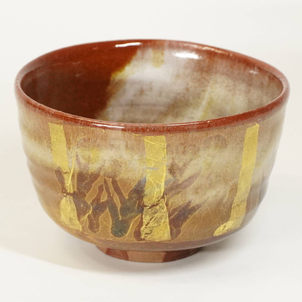 - 未使用デットストック品 昭和ビンテージ 九谷焼 徳山窯 四代目 新田邦彦作 茶盆 茶道具 金箔 花紋 抹茶茶碗 共箱 エステートセール MNK