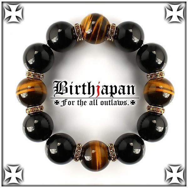 - 18mm ロンデル×オニキス 虎目石タイガーアイ数珠ブレスレット