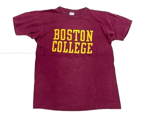 > 70'S 米国製 MADE IN USA バータグ チャンピオン Champion Tシャツ ボストン大学 フロッキー ボルドー サイズM [l-0136]