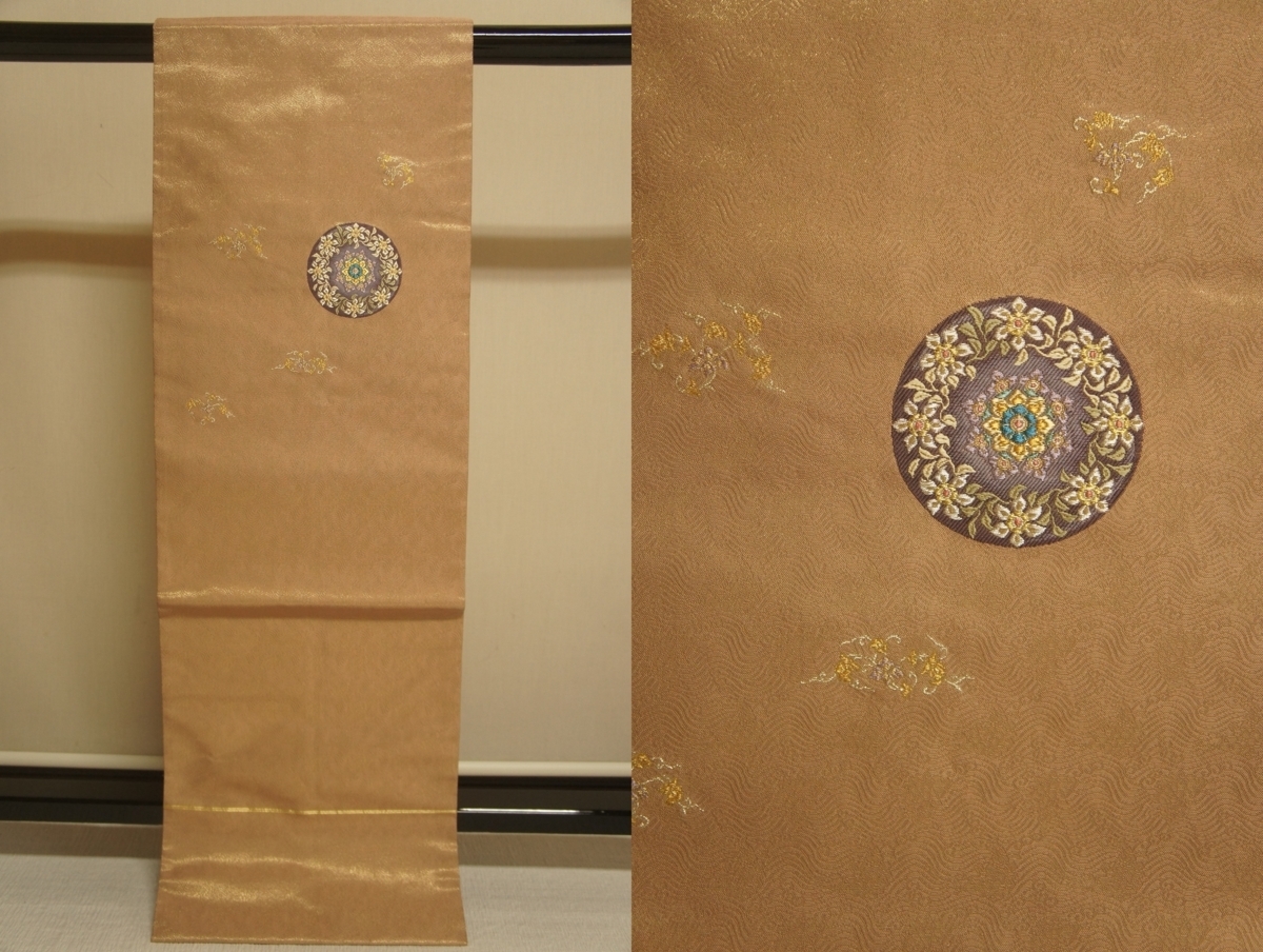 - 特選香色地金糸荒磯地紋花丸模様名古屋帯[N13395]