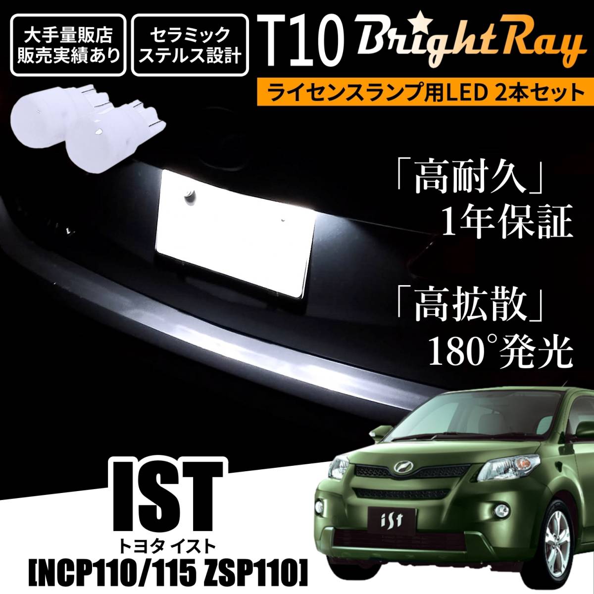 - 送料無料 トヨタ イスト ist NCP110 NCP115 ZSP110 BrightRay T10 LED バルブ 1年保証 ナンバー灯 ライセンスランプ ウェッジ球 ホワイト