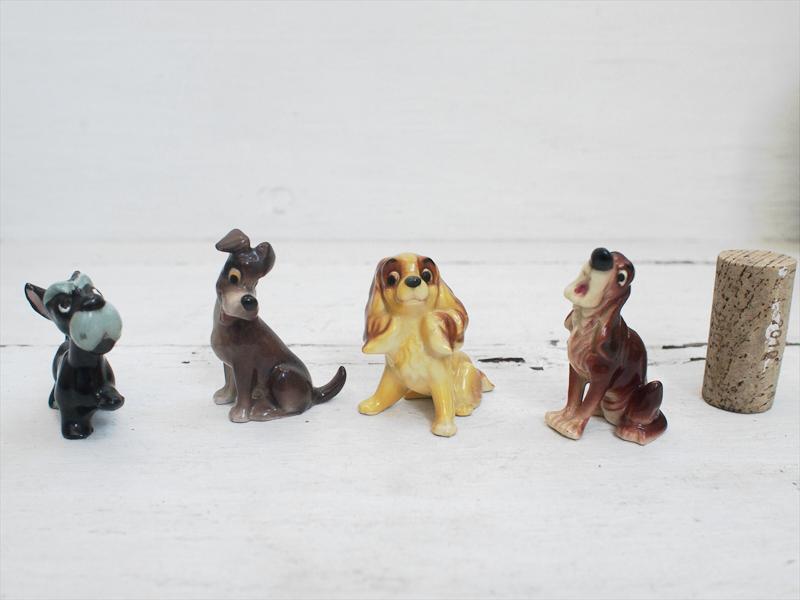 - ビンテージ雑貨*古いディズニーミニチュア陶器・わんわん物語4体セット☆置飾りコレクション