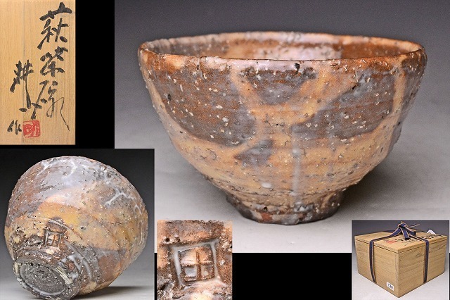 > 田村耕一 ★ 萩茶碗 ★ 共箱 ★ 迫力の景色 ★ 重厚感の茶碗 ★ 人間国宝 ★ 萩焼 ★ 希少作