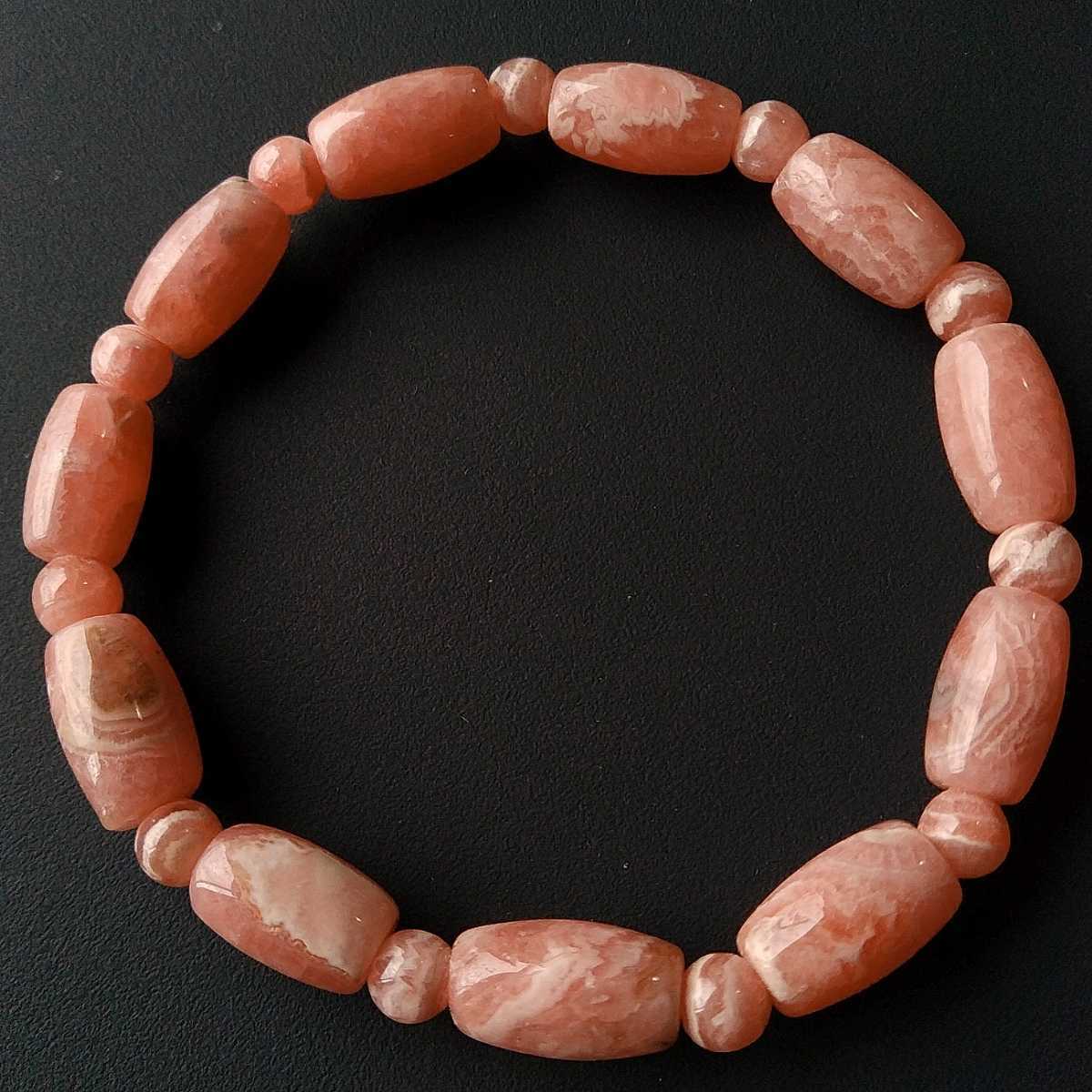 - インカローズ ロードクロサイト 樽型 天珠型 デザイン ブレスレット 15cm