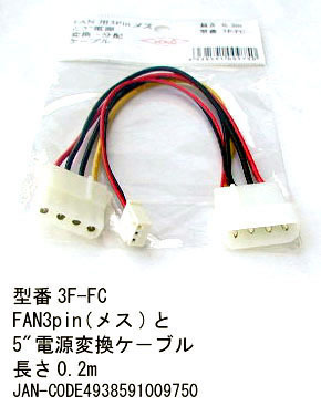 【3F-FC】5インチ電源をファン用3ピン電源(メス)に変換メール便対応商品 [M05]
