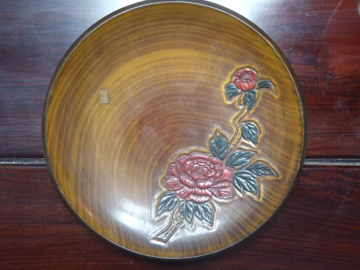 - 盛皿 トレイ 大皿 菓子器 合成漆器 牡丹柄