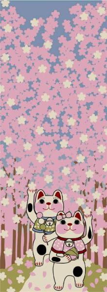 - 新品 福まねき猫シリーズ 春 桜並木 手拭 てぬぐい