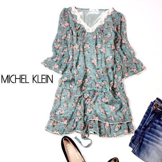 > ☆☆ 美品 MICHEL KLEIN ミッシェルクラン ☆☆ 可愛い花柄 シフォン チュニックワンピース 38号 春 夏 22E03
