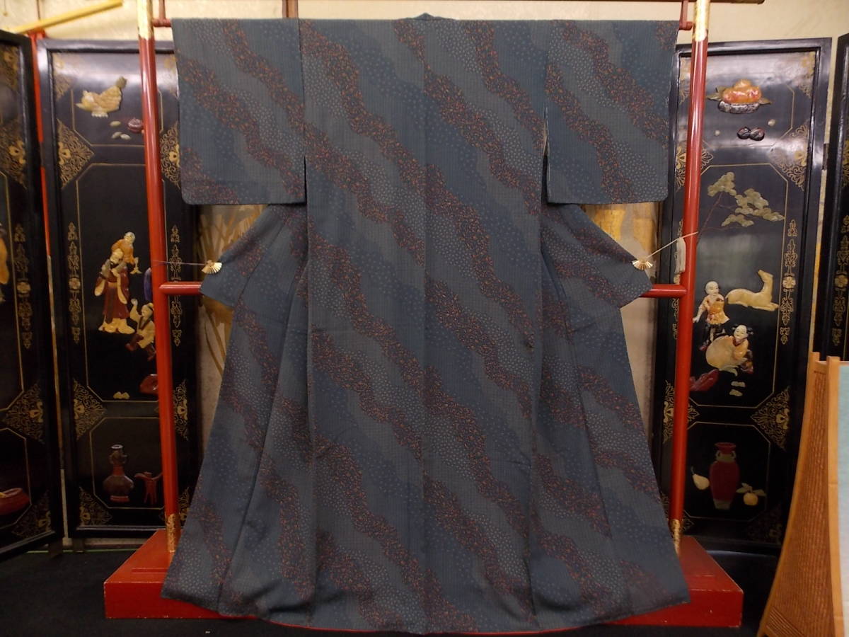 > きもの今昔3553 小紋のきもの 正絹広衿袷仕立て 桜・梅・七宝などの江戸小紋に大根人参や果物色差し柄